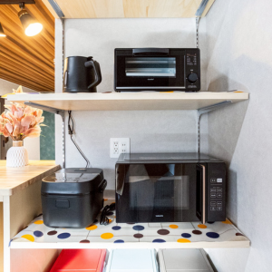 1Lケトル、オーブントースター、5合炊飯器、電子レンジ、1Lミキサーをご用意しております。コーヒーはドリップコーヒーをご用意しております。